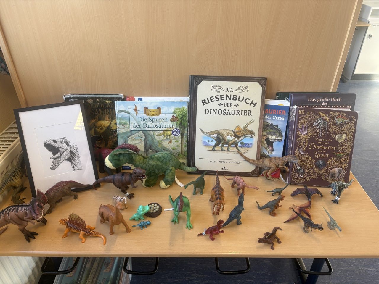 In den 4. Klassen ist das Dino-Fieber ausgebrochen! Gemeinsam wird über das Leben und Aussterben der Dinos philosophiert, die Kinder bringen mit Eifer Vorwissen, Ideen und Vermutungen ein. Sogar kleine Dinos schlüpften im Klassenraum aus ihren Eiern. Ein Thema, das alle begeistert!